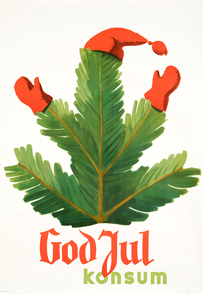 En affisch föreställande en grankvist med tomteluva och vantar från 1947 fick enligt samma bok ett ljummare mottagande ute i föreningarna, men uppmärksammades internationellt i reklamsammanhang.