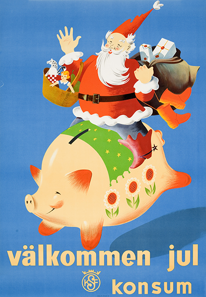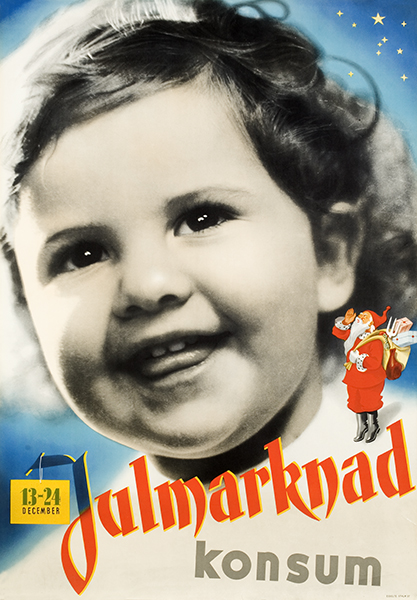 Ett antal affischer på jultema finns i arkivet, bland annat en affisch från det första krigsåret 1939 med budskapet att julens festligheter kanske var extra välbehövliga detta år. En annan affisch från 1937 med ett leende barn, inspirerade enligt jubileumsboken Co-op Reklam från 1955 många föreningar att ordna sin julhandel i form av en julmarknad.